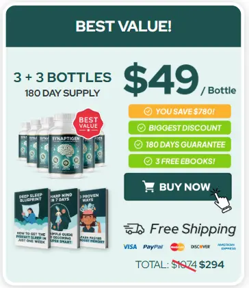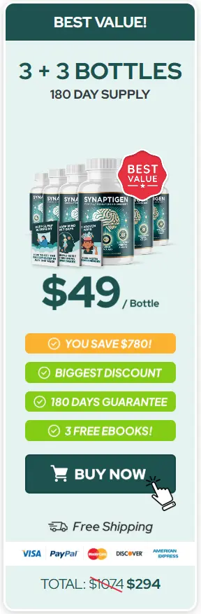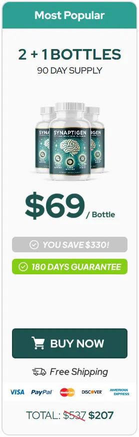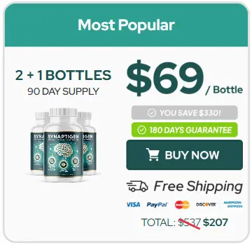 At this moment, you can order the Synaptigen supplement for 72% OFF + FREE Shipping. This is a Limited-Time Offer, and due to high demand and the purity of our ingredients, it won’t be available for long. Don’t risk your cognitive performance by waiting—ensure your supply of the world’s most advanced nootropic today.