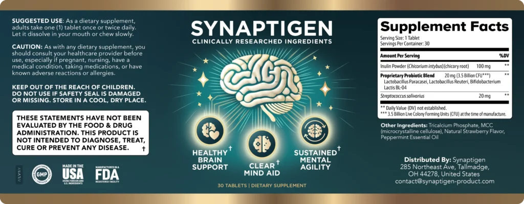 When exploring the world of high-performance nootropics, the ingredient list is where the magic truly lies. Synaptigen features a unique, proprietary blend of rare probiotics and plant-based neuro-nutrients that you won’t find in generic brain supplements. Instead of just adding common vitamins, the creators of Synaptigen focused on a synergy designed to optimize the gut-brain axis and eliminate neural ‘clutter.’